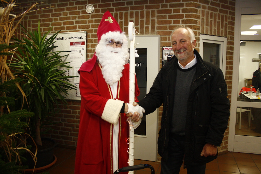 Gutes denken und handeln. Frei nach diesem Motto hat der Nikolaus (Rainer Kuhrmann) auf dem diesjährigen Adventsbasar der Freckenhorster Werkstätten bereits im November fleißig Geld gesammelt.