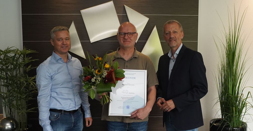 „Vierzig Jahre in einem Team sind heute keine bei weitem keine Selbstverständlichkeit mehr. Umso mehr freuen wir uns, dass Herr Schulte mit seinem Engagement und seiner Verlässlichkeit seit so vielen Jahren ein wichtiger Bestandteil der Kreishandwerkerschaft ist“, betonte Geschäftsführer Schrade.