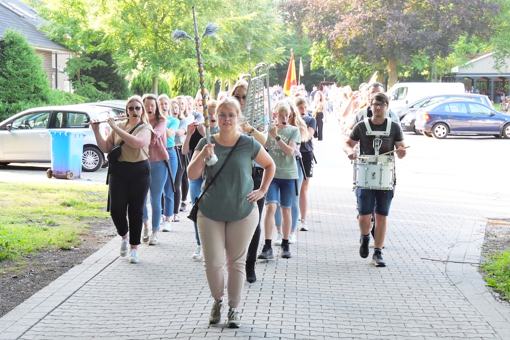 Während also die koordinierte gemeinsame Fortbewegung als Arbeitstitel für den traditionellen Eintrag im Jahreskalender herhalten muss, stehen immer schon kühle Getränke bereit. Auch weil die meisten Proben bislang auf recht warme und heiße Tage fielen. Aber auch, weil die Vorfreude auf das zwei Wochen später stattfindende Fest so noch einmal verstärkt werden kann. Schließlich stehen nach der Marschprobe noch weitere Aktionen an, wie das Schmücken der Straßen, die sich stets über viele Mitstreiter freuen.
