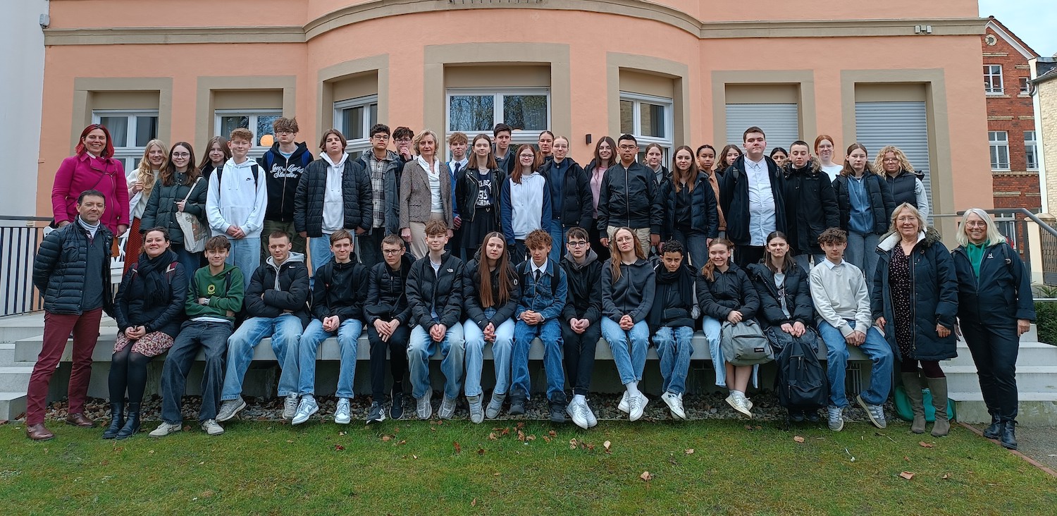 Eine Gruppe von Schülern aus der französischen Gemeinde Étrépagny und der Nachbarstadt Girsors in der Normandie mit ihren deutschen Austauschschülern vom Mariengymnasium (MGW) ist am Morgen erneut von der stellvertretenden Bürgermeisterin Doris Kaiser empfangen worden. Anlass des Empfangs war das 10-jährige Bestehen der Schulpartnerschaft zwischen MGW und den zwei Schulen aus Étrépagny und aus der Nachbarstadt Girsors.