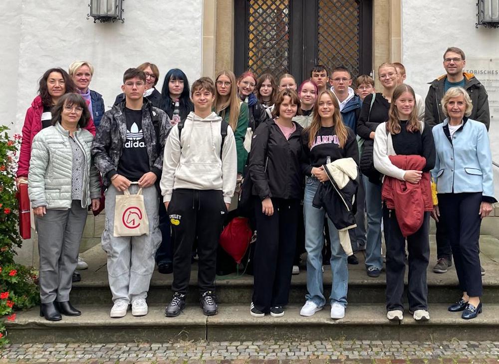 Eine Gruppe von Schülern aus der polnischen Partnerstadt Olesnica ist am Morgen von der stellvertretenden Bürgermeisterin Doris Kaiser im historischen Rathaus der Stadt Warendorf empfangen worden. 14 Jugendliche aus Polen sind seit Sonntag bei Gastfamilien in Warendorf. Sie waren in Begleitung von deutschen Schülern des Lau am Rathaus Der Schüleraustausch wird organisiert gemeinsam mit dem Gymnasium Laurentianum. Der Besuch führt die polnischen Jugendlichen noch nach Oberhausen, Enschede und Köln und endet am Freitag. Der Austausch wird gefördert durch das Deutsch-Polnische Jugendwerk.