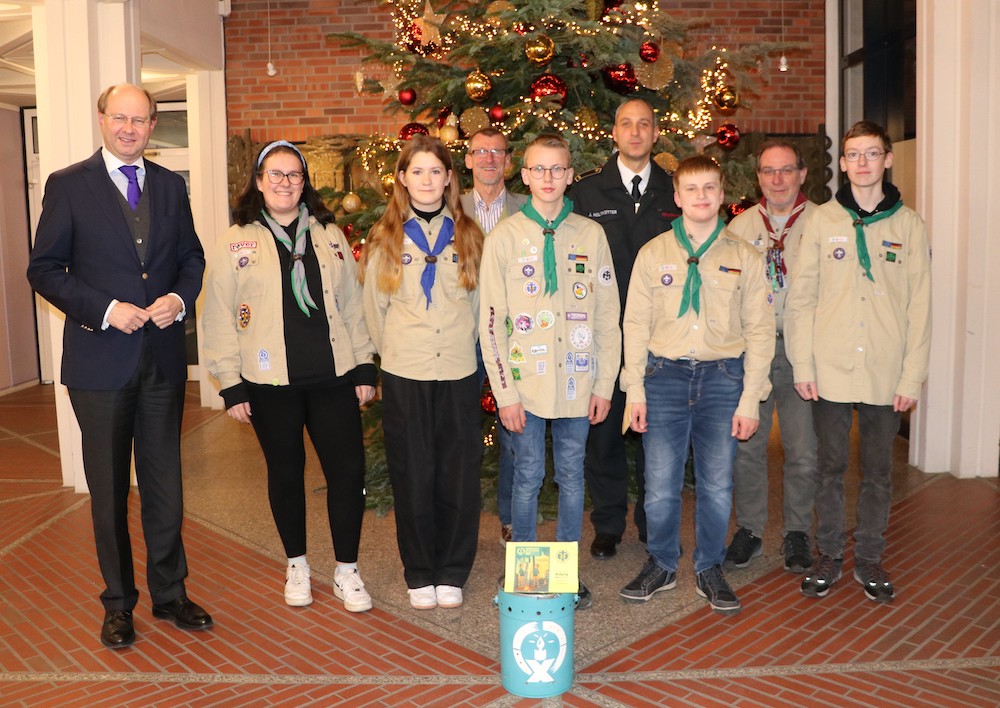 Landrat Dr. Olaf Gericke dankte den Pfadindern für ihren Besuch: „Frieden ist nie selbstverständlich – das spüren wir seit zehn Monaten auch in Europa. Das Friedenslicht ist ein Hoffnungsschimmer für die Menschen und kann uns dabei helfen, Trost und Kraft für das neue Jahr zu finden.“