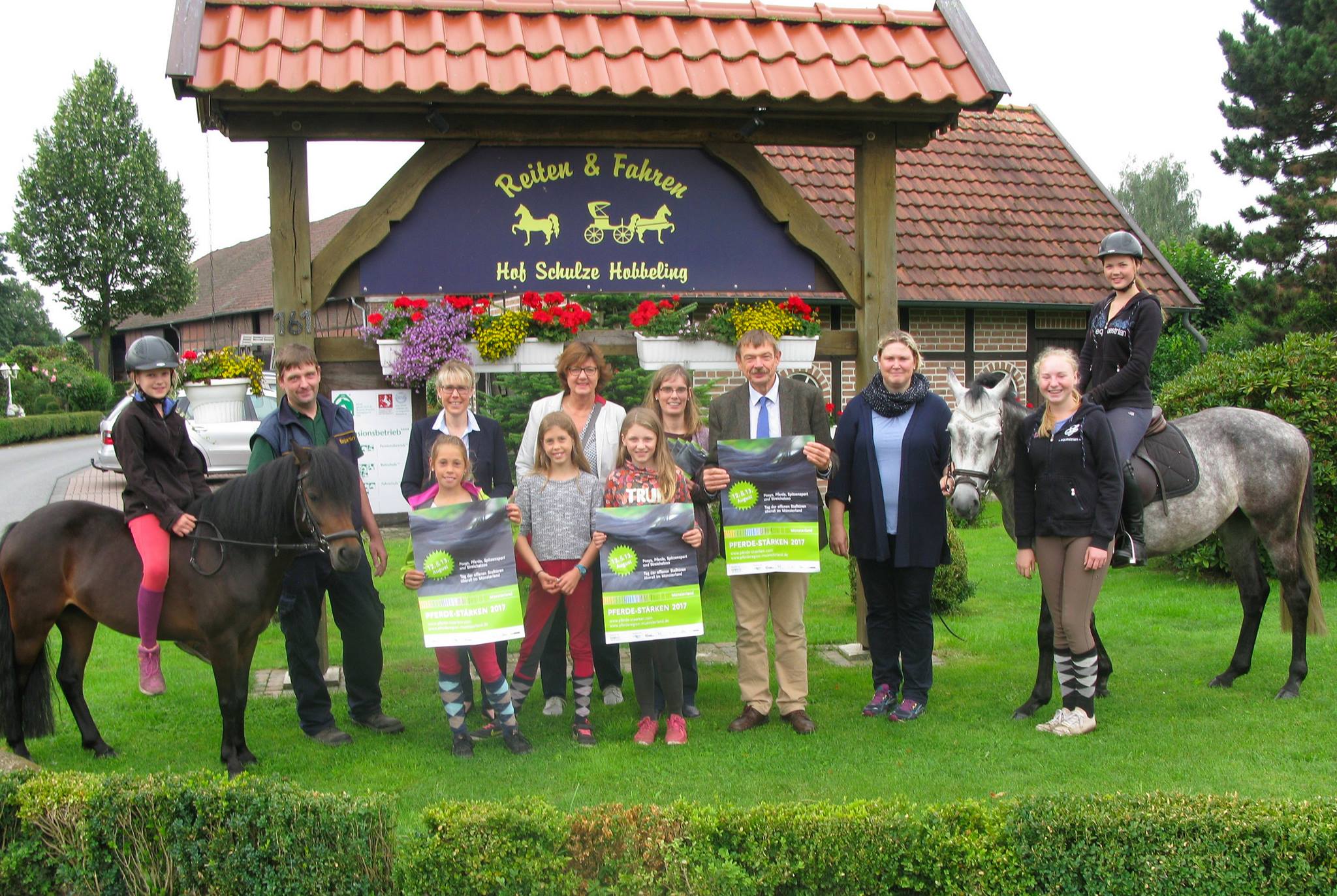 Von A wie „Aktionen zum Mitmachen“bis Z wie „Zucht“über Ponyreiten und Voltigieren bis zu Vorträgen zur Pferdehaltung sowie zum Turnier- und Leistungssport: Die Pferde-Stärken 2017 bieten im Kreis Warendorf vielfältige Angebote – für Erwachsene ebenso wie für Kinder. 14 Betriebe aus dem Kreisgebiet beteiligen sich am Samstag und Sonntag, 12./13. August. Marion Pleie vom Veranstalter Münsterland e.V. stellte das Programm im Kreis vor. „Mit dem Aktionswochenende wollen wir die Pferderegion Münsterland einem breiten Publikum als Freizeit- und Urlaubsregion näher bringen“, sagte Heinz-Jürgen Müller (Kreis Warendorf) bei der Vorstellung des Programms auf dem Hof Schulze Hobbeling in Telgte-Westbevern.