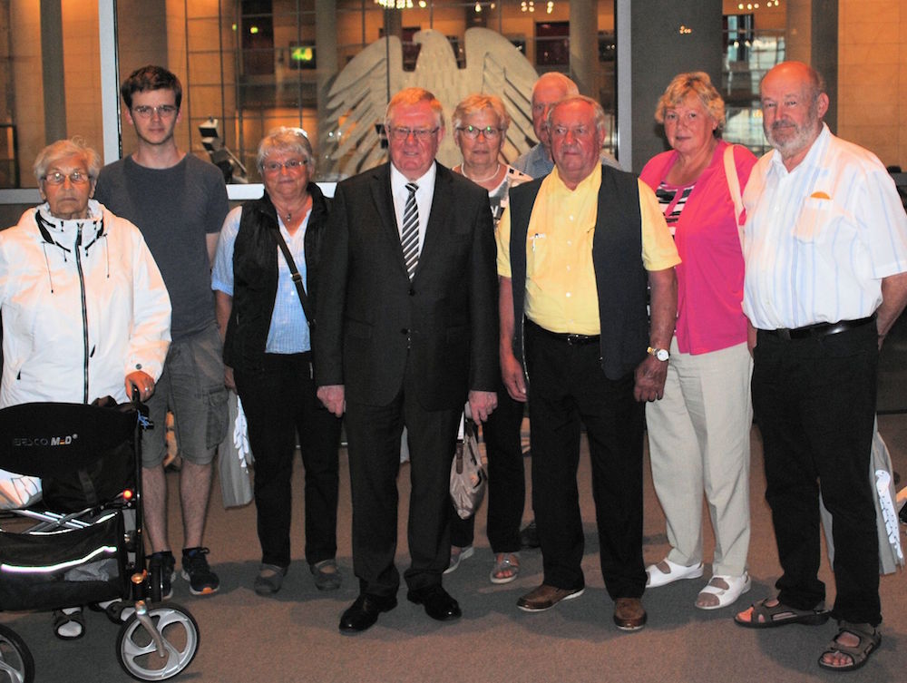 In dessen Verlauf berichtete Sendker seinen Gästen ausführlich über die Themen, die das politische Berlin kurz vor der Sommerpause und dem anstehenden Wahlkampf noch bewegten. Das absehbare Ende der Legislatur war dann für Sendker auch Anlass Bilanz zu ziehen: „Nicht nur für ihn persönlich sei diese „äußerst erfolgreich“. Ein nie gekannter Investitionshochlauf im Bereich Verkehr und das Ergebnis des Bundesverkehrswegeplans, mit 19 Projekten des Kreises Warendorf im „vordringlichen Bedarf“, seien seine ganz persönlichen Highlights. Doch auch die Bundesrepublik Deutschland stünde so gut dar wie nie zuvor. Annähernd alle Entwicklungsdaten seien positiv, angefangen bei einem florierenden Arbeitsmarkt und vollen Sozialkassen bis hin zu deutlich mehr Finanzmitteln für die Verkehrsinfrastruktur. Dabei hatte Sendker auch konkrete Zahlen an der Hand: „Von 100 Euro des Bundeshaushaltes kommen großartige 54 Prozent sozialen Angelegenheiten zugute“, erläuterte Sendker seinen Gästen. Daher überrasche ihn auch das Ergebnis einer aktuellen Studie nicht, wonach 81 Prozent aller Deutschen angeben würden, es ginge ihnen gut bis sehr gut. „Solch hohe Zufriedenheitswerte hatten wir noch nie“, so der Bundestagsabgeordnete stolz. Sofern er den Kreis Warendorf auch in der 19. Legislaturperiode im Deutschen Bundestag vertrete, würde er alles in seiner Macht stehende zu tun, diesen Wert zu stabilisieren und auszubauen. Dieses Versprechen gab Sendker seinen Gästen aus Hoetmar mit auf den Weg, bevor diese sich zum Besuch der weltberühmten Reichstagskuppel aufmachten.