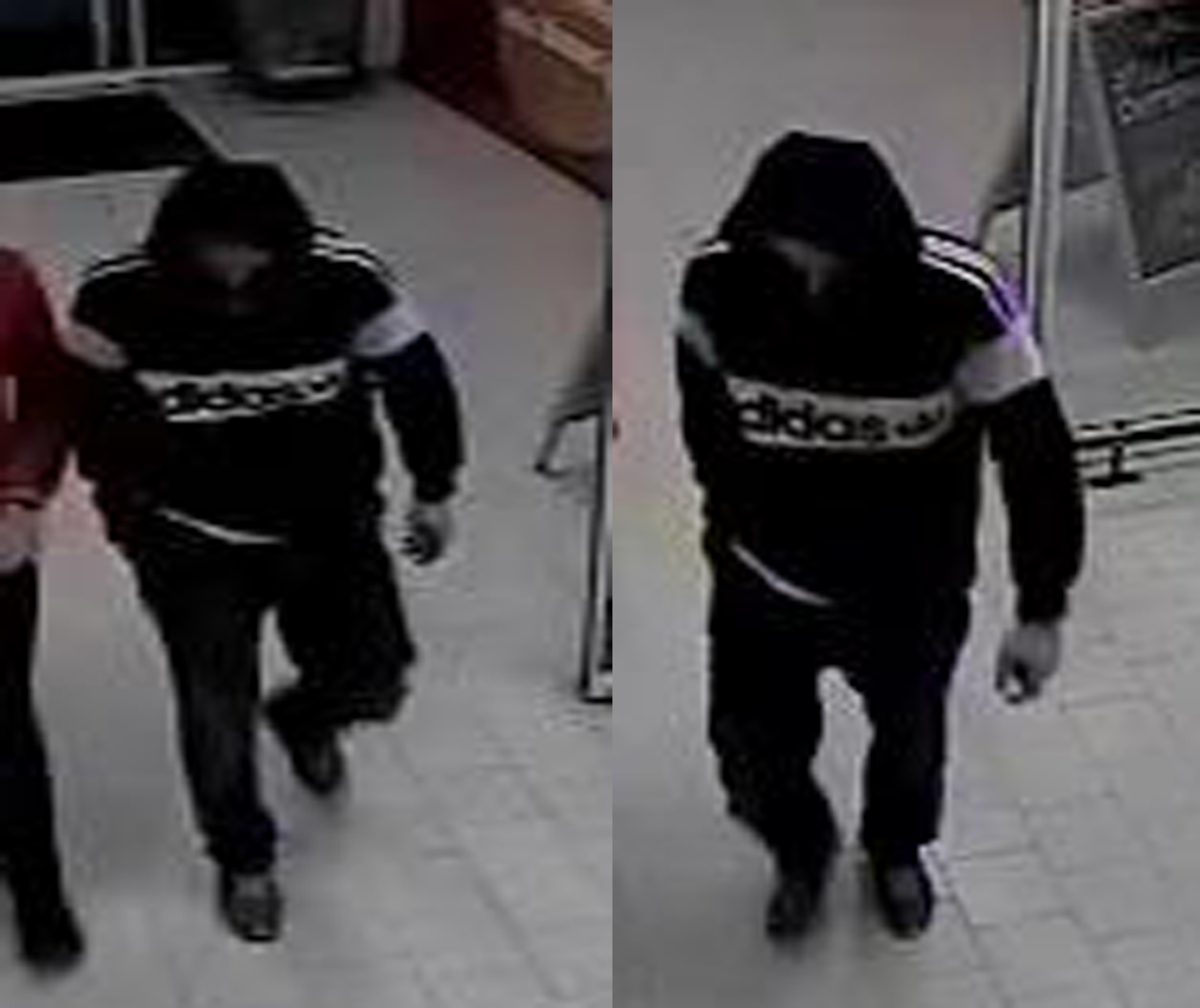 Der Tatverdächtige war im Alter von 25 bis 35 Jahren und etwa 180 bis 185 Zentimeter groß. Er hatte eine dunkle Stimme und ein ungepflegtes Gesicht. Er trug eine dunkle Kapuzenjacke der Marke adidas. Auf dem weißen Bruststreifen ist der „adidas“ Schriftzug und das Logo aufgebracht. An den Oberarmen befindet sich ebenfalls ein weißer Streifen. Drei weiße Streifen befinden sich im Schulterbereich.