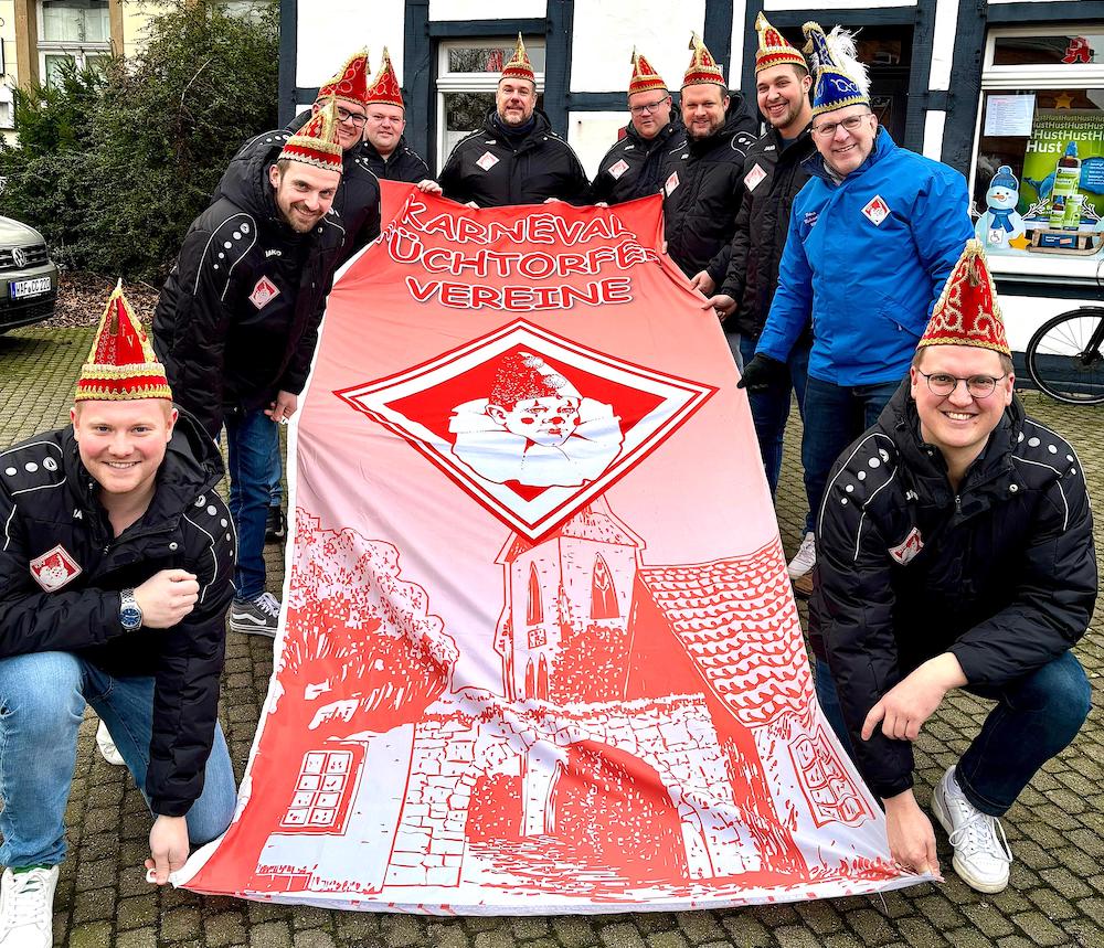 Die Flagge des Karneval Füchtorfer Vereine haben die Mitglieder des Elferrats und Prinz Robert I. auf dem Tie gehisst. Bis Aschermittwoch wird sie von der fünften Jahreszeit in Füchtorf verkünden.