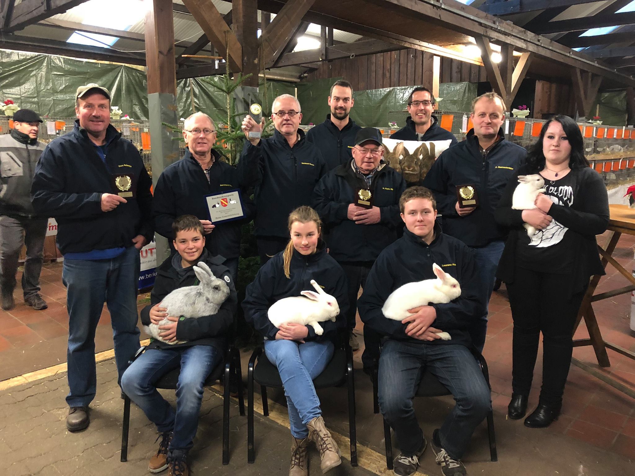 Diese sind: Jürgen Garnschröder mit Großchinchilla, Jan Gierhake mit Grauen Wienern, Reinhard Bruns mit Satin Elfenbein, Heinrich Klein-Bölting mit Alaska, Berni Rahr mit Hermelin Rotauge, Matthias Bruns mit Löwenkopfkaninchen in rhönfarbig.