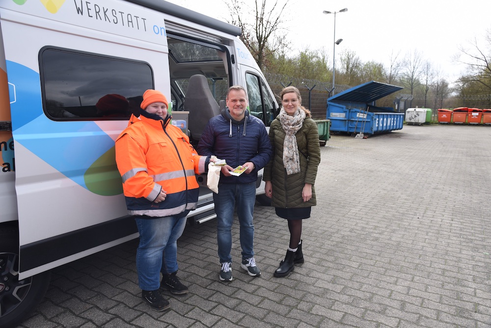 Rund 98.600 Kunden sind in den 25 Jahren schon gekommen, die allermeisten davon am Donnerstag. „Das haben wir auch bei den Wiederverwendungstagen in Zusammenarbeit mit HORIZONTE gemerkt“, berichtet Alexander Reklin, der die Recyclinghöfe im Unternehmensverbund koordiniert. Zum Geburtstag kam das neue Umweltbildungsmobil zum Recyclinghof, mit Geschenken an Bord: Nützliche Kleinigkeiten wie ein umweltfreundliches Schreibset oder der kleine Alltagsheld wurden verteilt. „Das ist ein Schlüsselanhänger mit drei Funktionen, der Flaschenöffner, Einkaufswagenchip und Schlüsselfinder in einem ist“, erklärt Tanja Künstner, die regelmäßig auf dem Recyclinghof in Sassenberg arbeitet. Außerdem gab es einige Wertmarken für den Tag der offenen Tür im Entsorgungszentrum am 1. Mai in Ennigerloh.