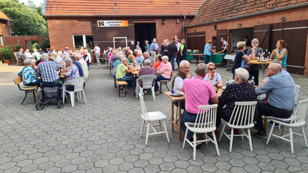 Am Dienstag, den 15. August 2023 fand wieder das Reibeplätzchen Essen der Kolpingsfamilie Sassenberg auf dem Hof Rüschoff statt. Knapp 100 Besucher nahmen an dem gemütlichen Beisammensein mit leckeren Reibeplätzchen und Apfelmus sowie gekühlten Getränken teil. Bis in die Abendstunden unterhielten sich alle angeregt an den Tischen. Alle Teilnehmer fanden die Veranstaltung sehr gelungen.  Ein besonderer Dank geht an die Familie Rüschoff, die den Nachmittag organisiert und gestaltet hat.
