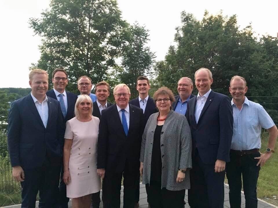 Unser Foto zeigt: Geschäftsführender Vorstand v.L.: Henning Rehbaum MdL, Markus Höner, Elke Duhme, Martin Arnst, Christoph Aulbur, Reinhold Sendker MdB, Frederik Büscher, Astrid Birkhahn, Uli Bösl, Daniel Hagemeier MdL und Burkhard Marx
