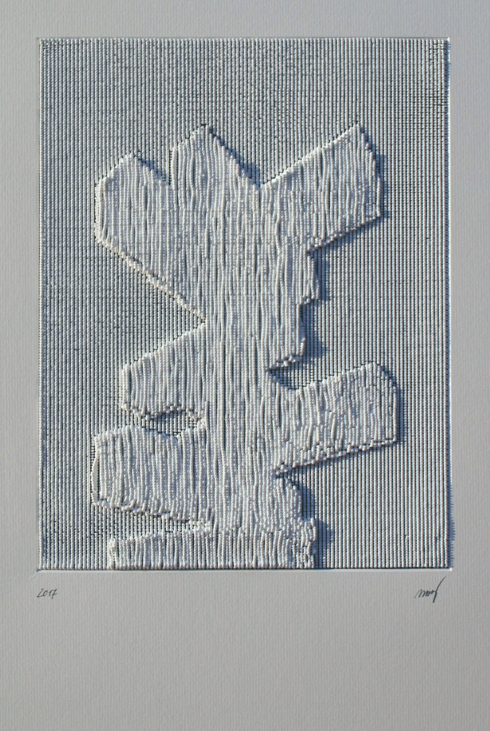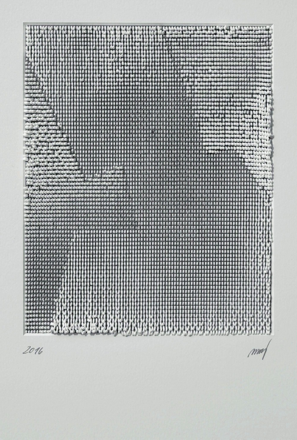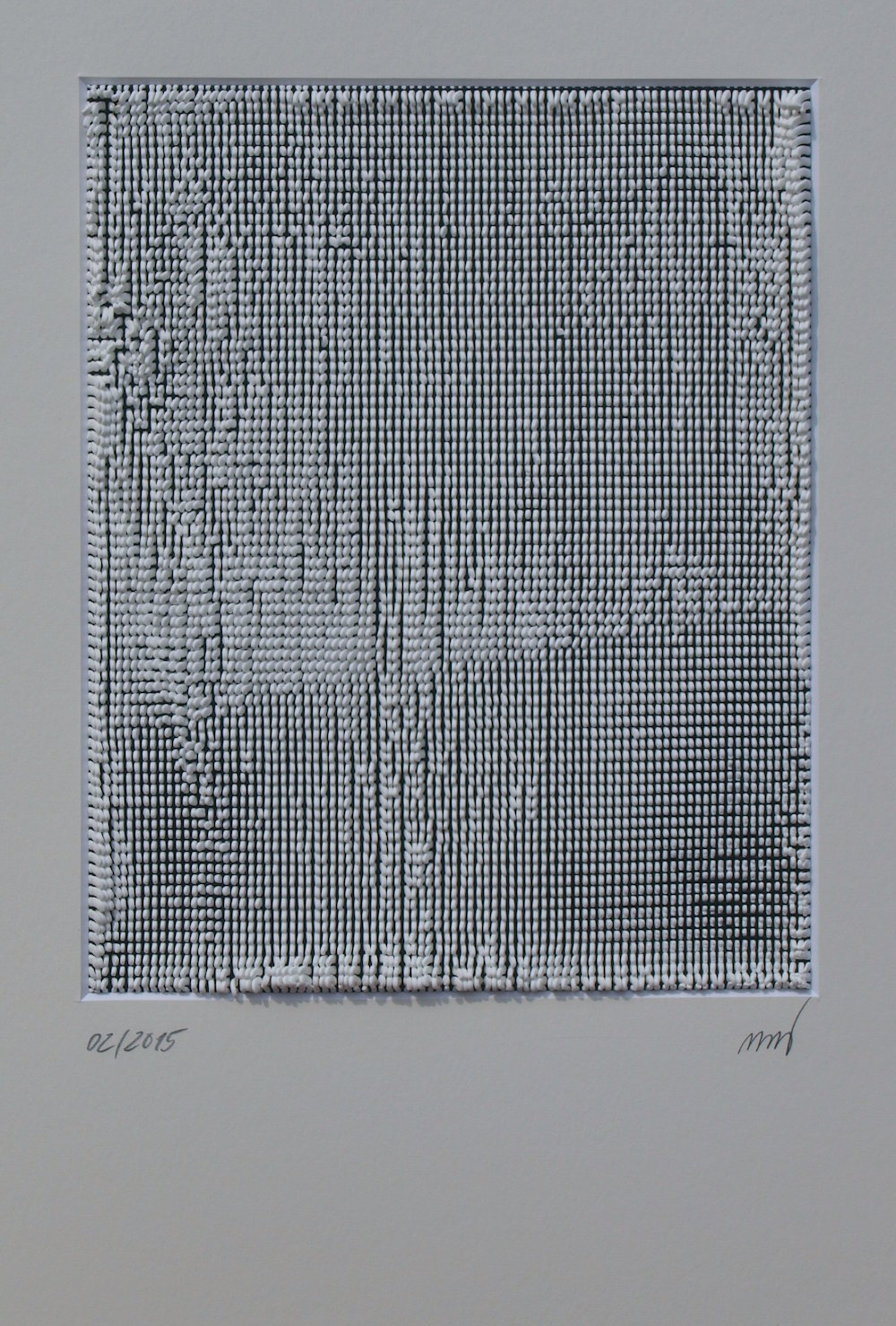 Das Warendorfer Künstlerpaar Jutta und Markus stellen ihre Arbeiten gemeinsam aus. Er überwiegend kleinformatige Gemälde und sie Marmorskulpturen. Markus Maier bearbeitet Leinwand von der Rückseite. Dabei transportiert er weiße Farbe durch die Poren der fein und grobmaschigen Leinwand, so dass auf der Vorderseite das spiegelverkehrte Bildmotiv erscheint. Durch diese reziproke Art entsteht die textile Anmutung der Gemälde. Durch die Farbe, die mehr oder weniger stark durchgedrückt wird, entstehen die verschieden langen Farbstränge, die wie abgerundete Garnfäden aus der Bildfläche ragen. Die Arbeiten von Markus Maier erfordern vom Betrachter das Sehen und Entdecken der Formen und der Licht- und Schattenreflexe. Jedes Bild ist ein Unikat, das ein bisschen aus sich selbst entsteht. Die endgültige Struktur lässt sich vom Künstler nicht hundertprozentig selbst bestimmen.