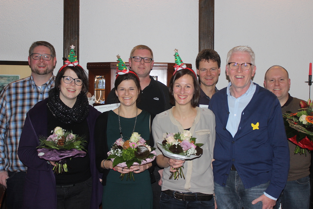 Zum Bild von links nach rechts: TT Abteilungsleiter Josef Reinke, Daniela Schloetmann, Christina Kulla, Rainer Vossmann, Anna Terfloth, Stefan Ringhoff, GW Vorsitzender Bernd Sternberg und Thomas Hortmann