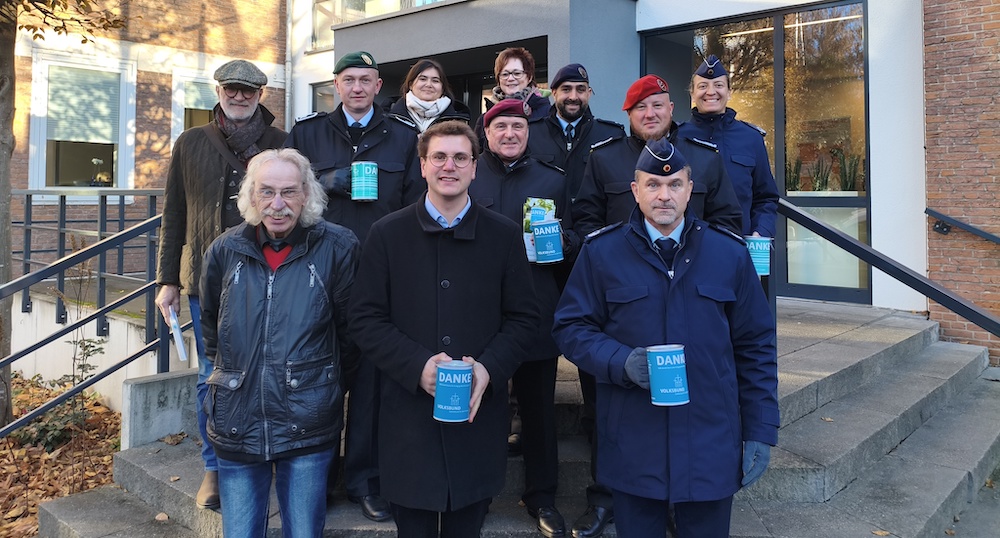Neben der Kriegsgräberpflege und Suche nach vermissten Kriegstoten im Ausland (www.graebersuche-online.de) werden die Spenden vor allem auch für die historisch-politische Bildungsarbeit des Vereins genutzt. Gerade diese sei immens wichtig, so Oberst Rüdiger Jorasch, Kommandeur der Sportschule der Bundeswehr, der in Begleitung von Soldaten und Mitarbeiterinnen der Kaserne an der Sammlung teilnimmt.