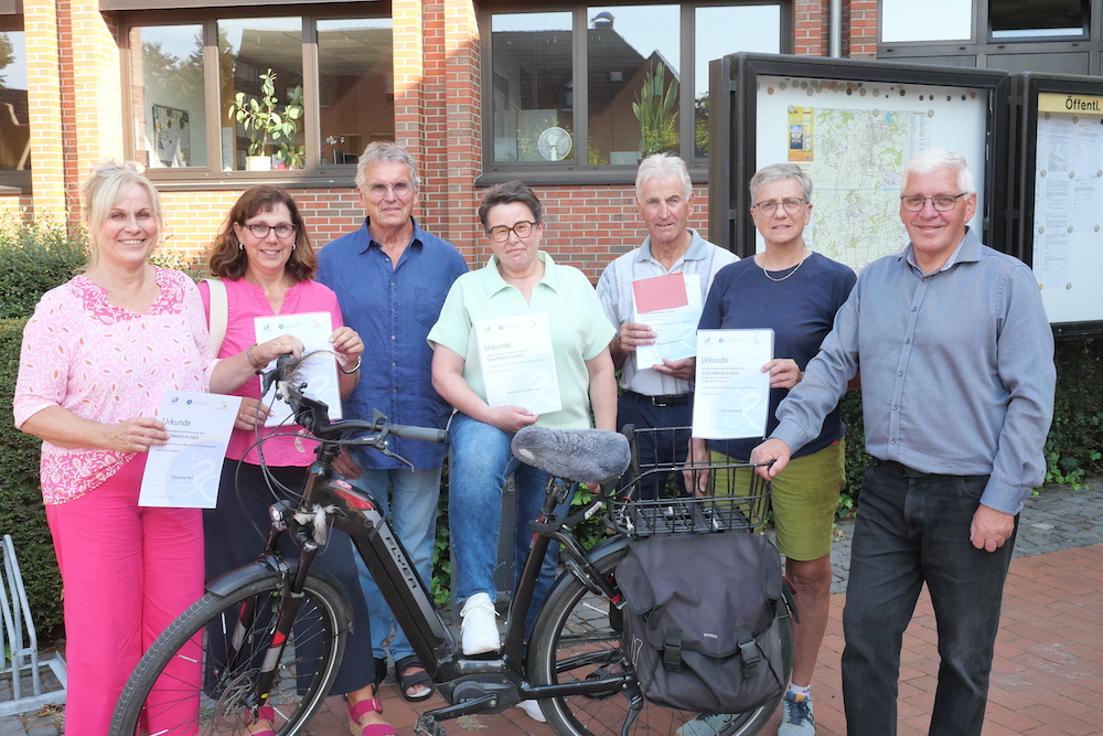 Bei der Mannschaftswertung ließ die Stadt das Los entscheiden. Platz eins erreichten Annette Niemerg und Hildegard Meyer als „Die radelnden zwei Freundinnen“ mit zusammen 514,7 Kilometern. Claudia Fell, Helga Krieft, Monika Wiewel und Maya Reimann führten mit dem Namen „Eigentlich nur ich“ ein wenig in die Irre. Sie erradelten 1125,3 Kilometer.