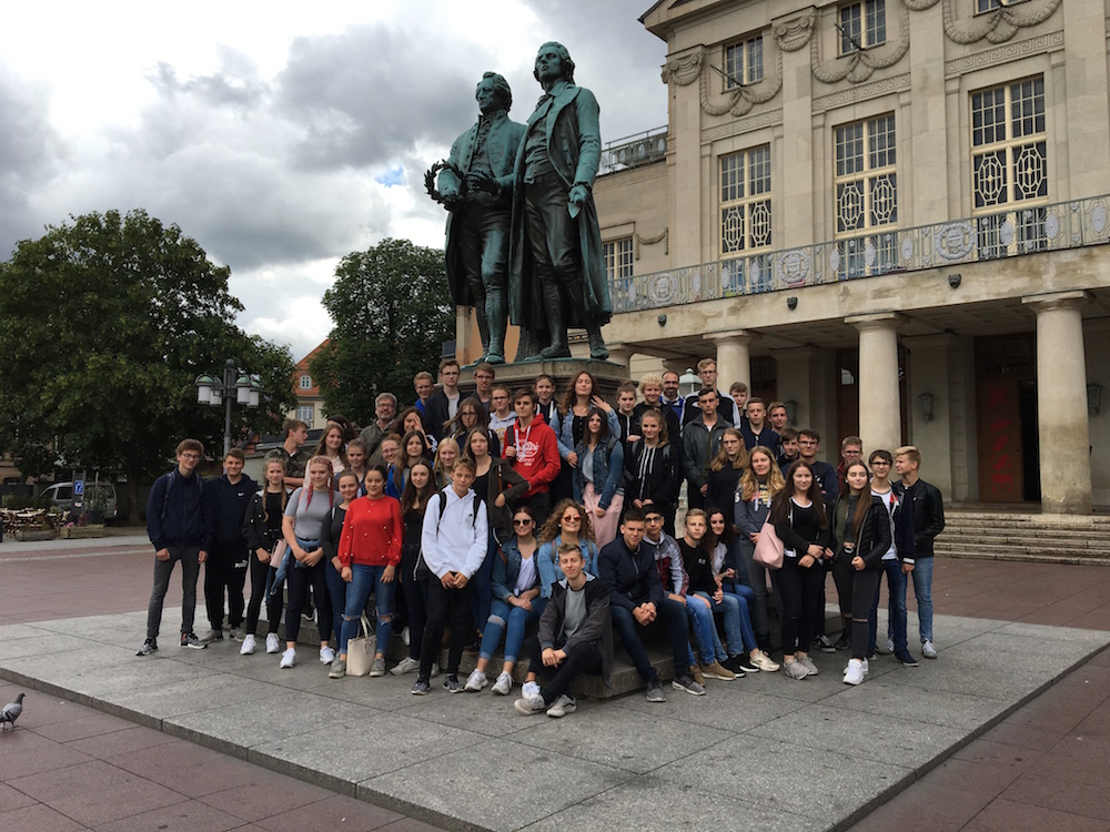 Unser Foto zeigt: Die Gruppe der Neuntklässler mit den drei Begleitern in Weimar