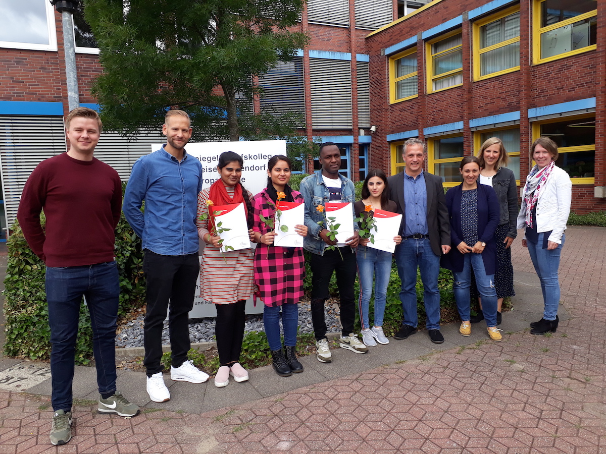 „Die Leistungsfeststellungsprüfung, die eine Besonderheit in der Internationalen Förderklasse darstellt, ist eine hervorragende Möglichkeit für unsere neu zugewanderten Schülerinnen und Schüler, ihre Bildungswege zu verkürzen. Wir wünschen den Absolventen alles Gute für ihre schulische und berufliche Zukunft“, so Schulleiter Udo Lakemper.