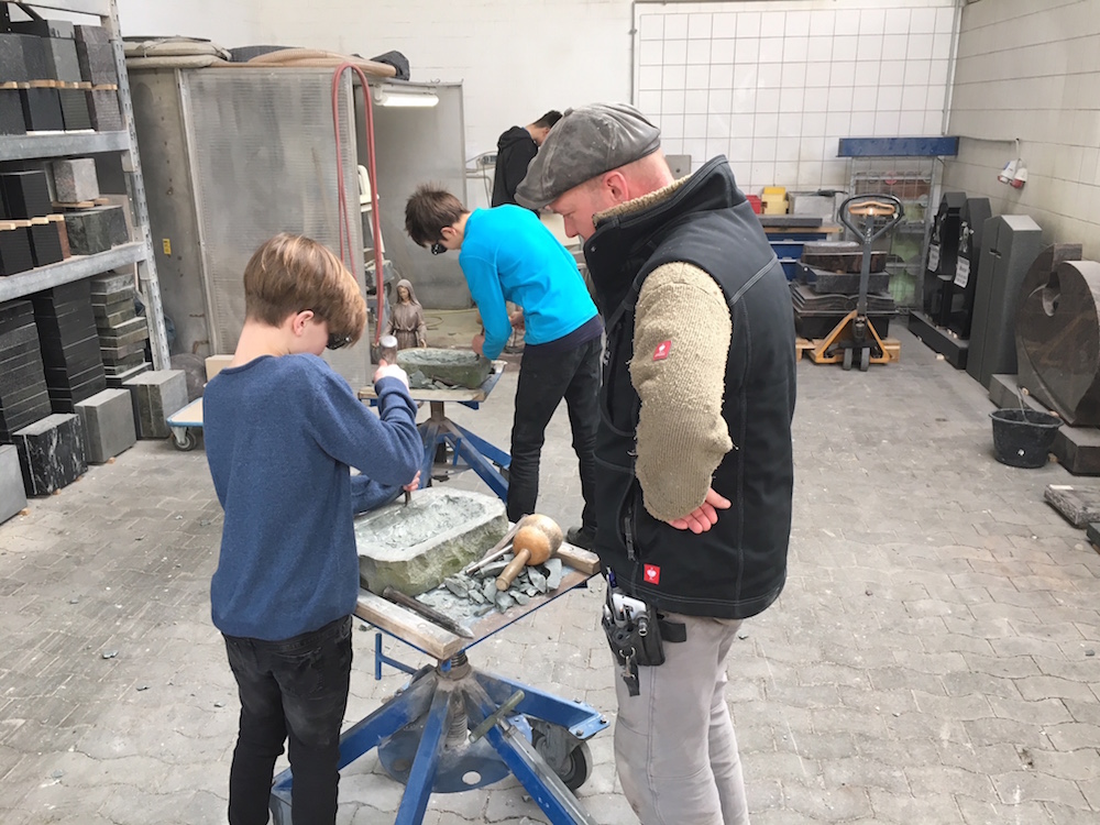 Im Rahmen eines eintägigen Praktikums erprobten zwei interessierte Schüler den Handwerksberuf des Steinmetzes bei Budde Grabmale in Warendorf. Unter der fachkundigen Anleitung erfahrener Steinmetze wurden ihnen die verschiedenen Werkzeuge und Bearbeitungstechniken gezeigt.
