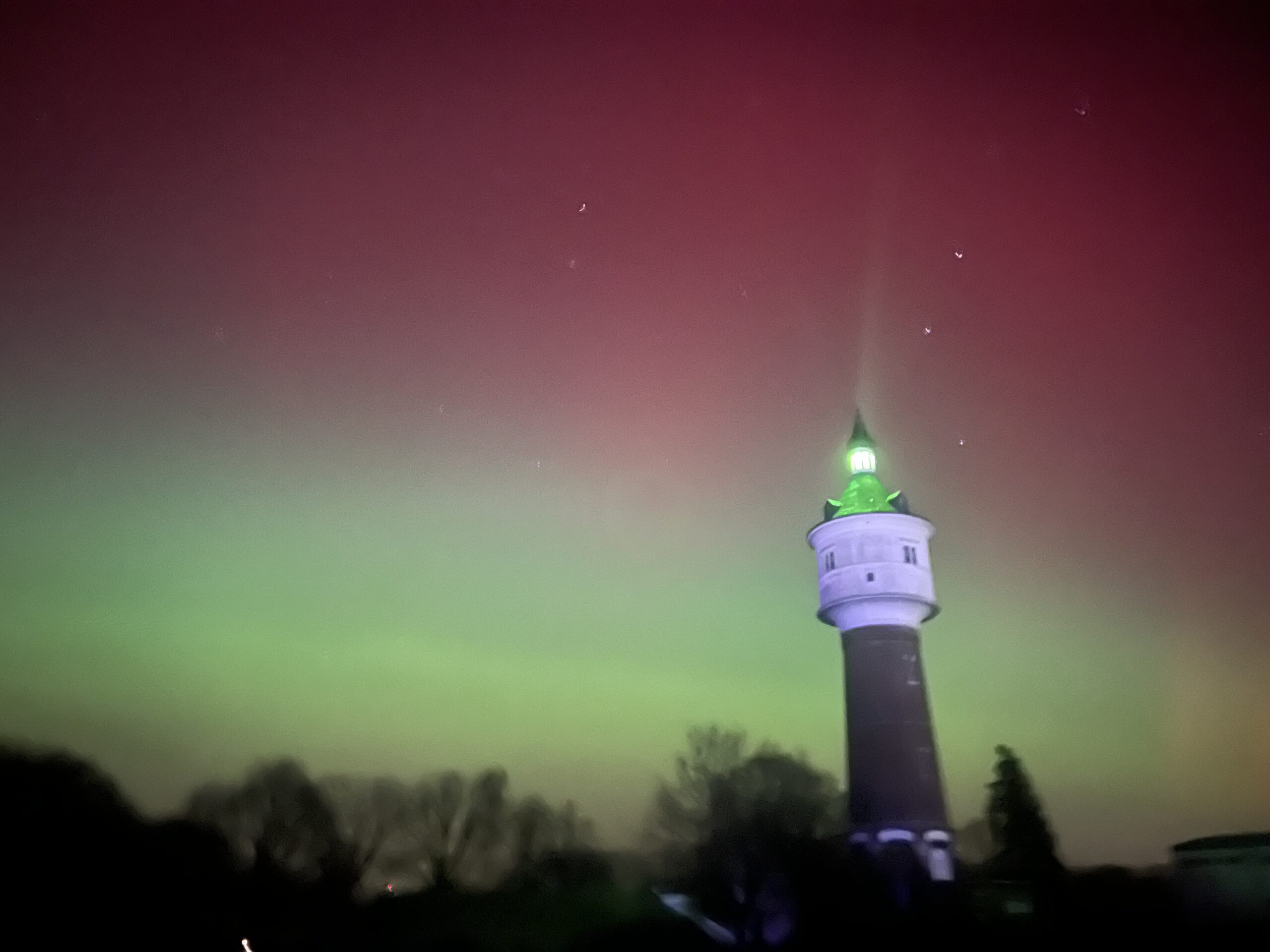 Ein außergewöhnliches Naturschauspiel hat am heutigen Abend zahlreiche Menschen in Warendorf in Staunen versetzt: Am Himmel waren deutlich Polarlichter zu sehen. Das sonst vor allem aus Skandinavien bekannte Phänomen färbte den Nachthimmel zeitweise in zarte Grün-, Rot- und Violetttöne.