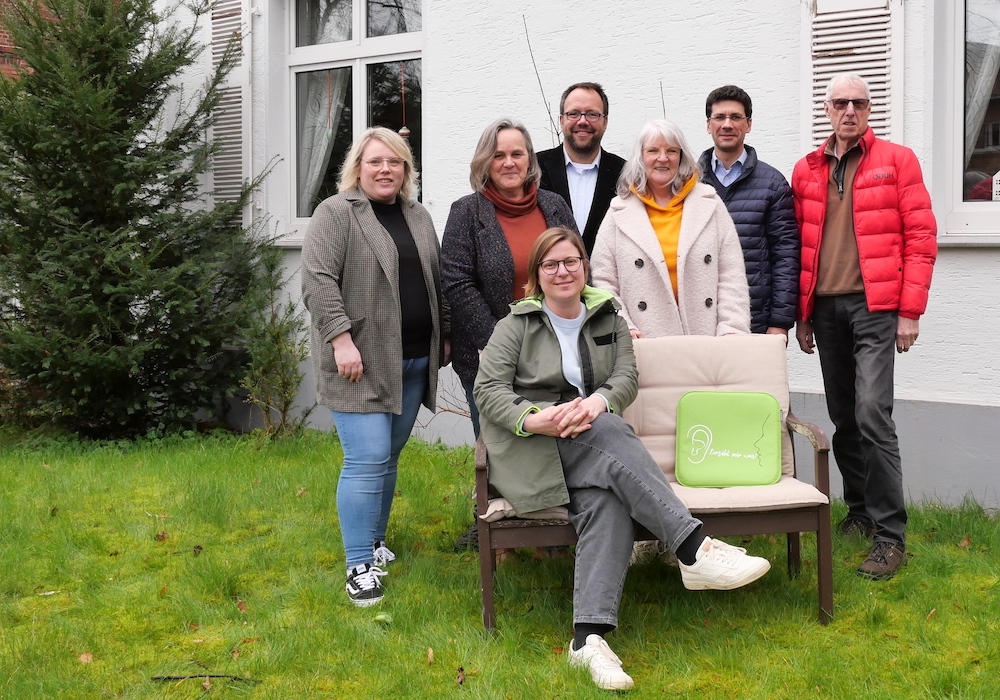 „Erzähl mir was“ laden Britta Sporket (sitzend), sowie Susanne Wittkamp, Ulrike Klemann, Ulrich Hagemann, Petra Schürmann, Cornelius Bury und Wolfgang Stüker zum Erzählen und gerne auch weitere Ehrenamtliche zum Zuhören ein (v.li.)