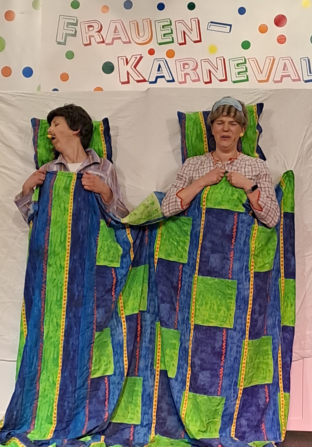 Marie (Andrea Budde) und Siegbert (Sylvia Laumann) deckten mit „Schlafstörungen“ die Probleme im Schlafzimmer auf, bevor „Petrus auf der Himmelsleiter“ Anna Pumkamp, gespielt von Sylvia Laumannn, in den Himmel lässt.