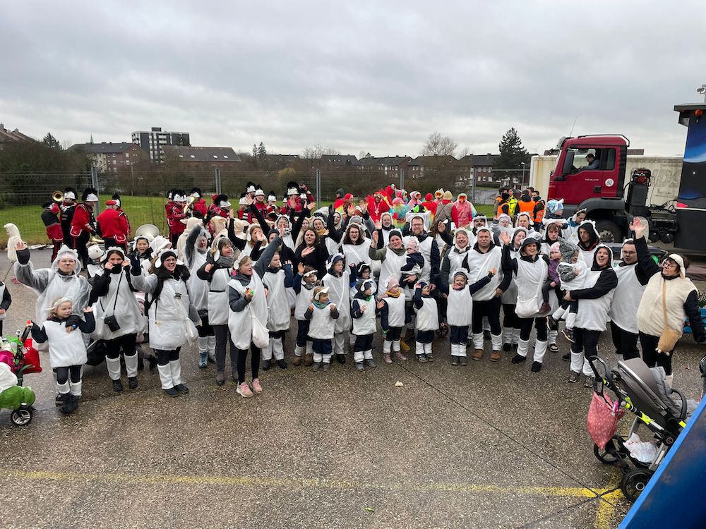 Ennigerloh. Nach langer Karnevalsabstinenz durften wir in diesem Jahr endlich wieder gemeinsam feiern. Eltern, Kinder und Erzieherinnen des Familienzentrum St. Jakobus haben sich gemeinsam dazu entschlossen Karneval wieder als Fußtruppe beim Karnevalsumzug in Ennigerloh teilzunehmen. Schon im Januar haben die Vorbereitungen für die närrische Zeit begonnen. Nachdem das Motto der Fußtruppe „So Scha(r)f wie nie“ feststand, ging es an die Vorbereitungen. Dazu fand ein Kostümnähabend mit engagierten Eltern und Erzieherinnen statt. Aus 80 weißen Fleecedecken wurden in liebevoller Handarbeit 80 Schafskostüme für Groß und Klein zugeschnitten und genäht.