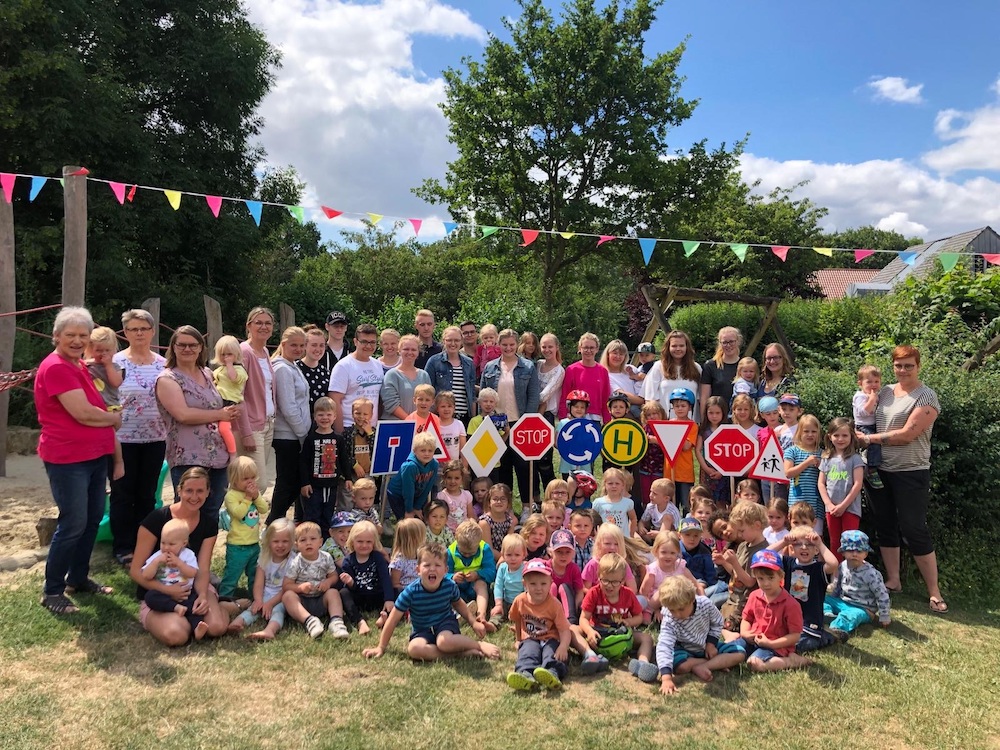 Unter begeisterter Mitwirkung der Kinder wurden deren mitgebrachte Bobby-Cars und Roller in einer Waschstraße zunächst gründlich gesäubert und gewartet. Im Anschluss ging es an die Gestaltung der Verkehrsschilder. Durch das Engagement von Herrn Lindart, Vater von Kim-Sophie, der das Holzmaterial bereitstellte und den Zuschnitt der Verkehrsschilder mit technischem Know-how unterstützte, entstanden zahlreiche Verkehrsschilder, die die Schülerinnen und Schüler in der KITA mit selbst kreierten Schablonen farblich gestalteten. Anschließend konnten sich die Kinder auf einem Fahrzeugparcours mit Verkehrshindernissen erproben und nach erfolgreicher Bewältigung, von den Schülerinnen und Schülern erstellte „Führerscheine“, stolz entgegennehmen.