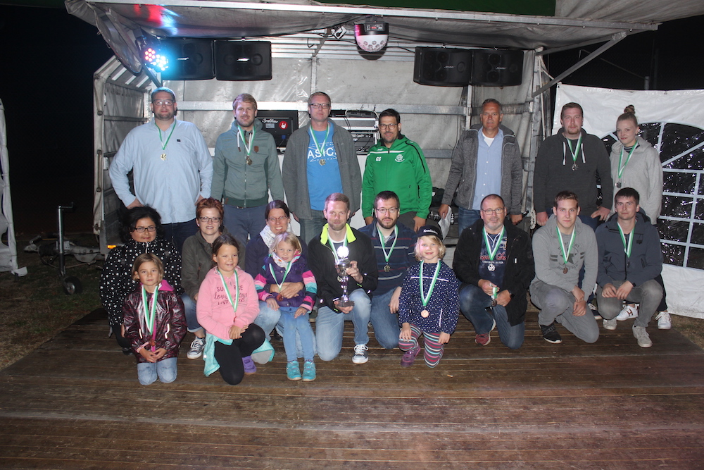 Das Bild zeigt die Sieger und Platzierten- die Tischtennisabteilung, die freiwillige Feuerwehr, die „Bultbachmädels & X sowie die Organisatoren aus dem Vorjahr.