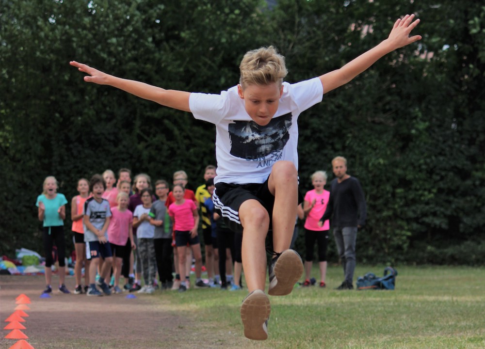Zuerst ging es für die Klasse 5B, die Bläserklasse des Mariengymnasiums, zur 50 m-Sprintstrecke. Ein leichter Rückenwind sorgte bei manchen Sprintern für sehr gute Zeiten unterhalb von neun Sekunden. Insgesamt 213 Schülerinnen und Schüler traten an, um die besten Klassenteams in den Disziplinen Sprint, Weitwurf und Weitsprung zu ermitteln. Das Sportfest der fünften und sechsten Klassen des Mariengymnasiums, das jedes Jahr kurz vor die Sommerferien fällt, war in diesem Jahr sogar mit einem Müllsammelwettbewerb verbunden worden. Und so wurde die Müllzange zu einem weiteren Sportgerät, mit dem die Schülerinnen und Schüler dann im Gelände verschwanden. Kaum waren die Sieger aus diesem Wettbewerb ermittelt, traten die Klassen beim abschließenden Höhepunkt des Tages, einer Pendelstaffel der fünf schnellsten Mädchen und fünf schnellsten Jungen jeder Klasse, gegeneinander an. Sportlehrer Fabian Gill, neben seinem Kollegen Merlin Marggraf Hauptverantwortlicher der Veranstaltung, teilte die begeisterten Klassen schnell in zwei Hälften, die außerhalb der Strecken Aufstellung nehmen mussten. Die in allen Disziplinen überragende Klasse 5A und die Klasse 6B erreichten bei der Pendelstaffel unter lauten Anfeuerungsrufen die ersten Plätze und wurden, nach der Berechnung der Klassenmittelwerte in den anderen Disziplinen, auch zu den Gesamtsiegern erklärt. Die zweiten Plätze erreichten die Klassen 5E und 6D, die Klassen 5C und 6A die dritten Plätze.