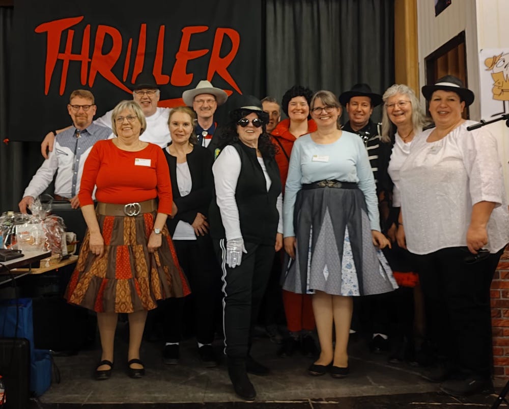 Das Bild zeigt alle graduierten Students der beiden Squaredance-Clubs „Hobby Horse Hoppers“ aus Warendorf sowie des Vereins „Windmill Dancers Ennigerloh e.V.“ mit Michael Franz (5. v.l.).
