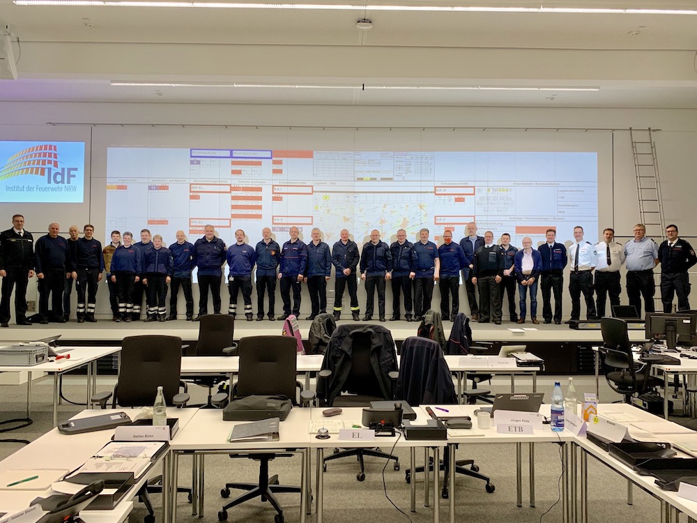Eine dreitägige Fortbildung absolvierten die Mitglieder des Stabes der Einsatzleitung des Kreises Warendorf mit Unterstützung der Fernmeldeeinheit am Institut der Feuerwehr (IdF) in Münster.