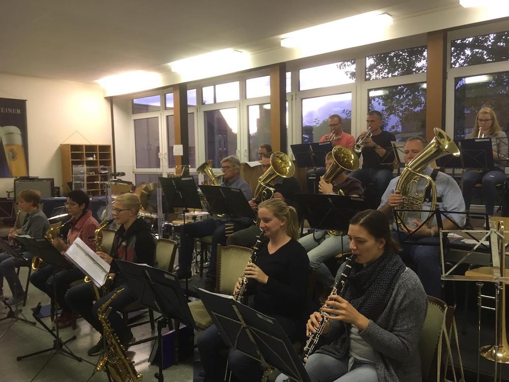 Das Foto zeigt einige Mitglieder der Stadtkapelle bei der Probe am 18.09.2019.