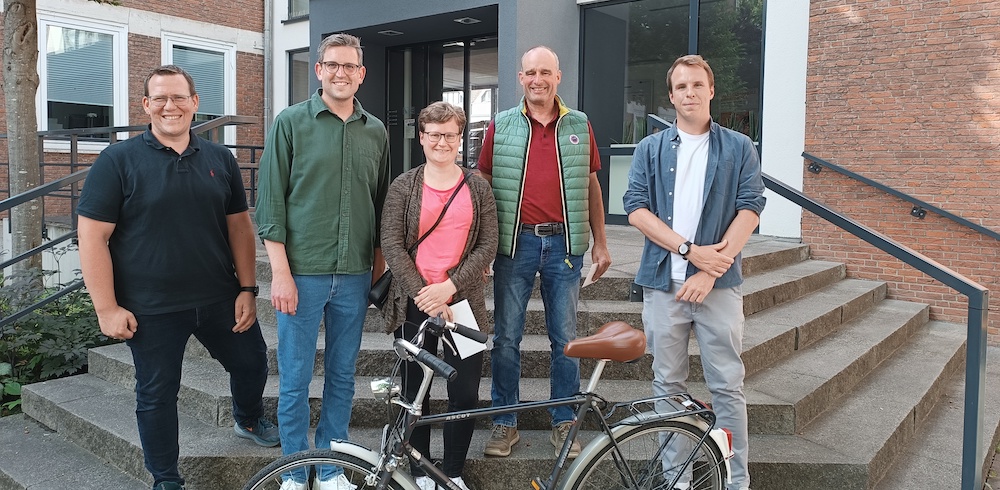 V.l.: Benedikt Wuttke (Tiefbau Stadt Warendorf, Daniel Gnegel (Platz 3), Jutta Westrup (Platz 1), Johannes Justus (Platz 2) und Tobias Schwarzer (Städt. Mobiliätsmanager.
