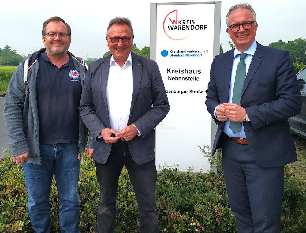 Sport und Handwerk passen sehr gut zusammen: Dies hat ein Treffen des Stadtsportverbandes Warendorf (SSV) mit der Kreishandwerkerschaft Steinfurt Warendorf (KH) untermauert. KH-Hauptgeschäftsführer Frank Tischner tauschte sich jetzt mit Peter Huerkamp, dem 1. Vorsitzenden des SSV und seinem SSV-Vorstandskollegen Andreas Beckmann aus, der als Obermeister der Maler- und Lackierer-Innung Warendorf auch im Handwerk ehrenamtlich aktiv ist.