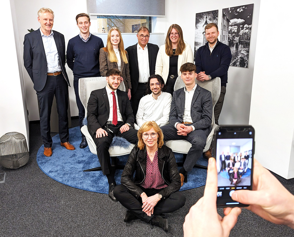 Stehend: Ulrich Webers, Finn Kirchner, Katharina Wieschues, Thomas Schmidt, Lea Oldiges, Lennart Vennemeyer / sitzend: Joel Herbert, Tolga Gül, Mathis Kappel und vorne Beate Dobschanski.