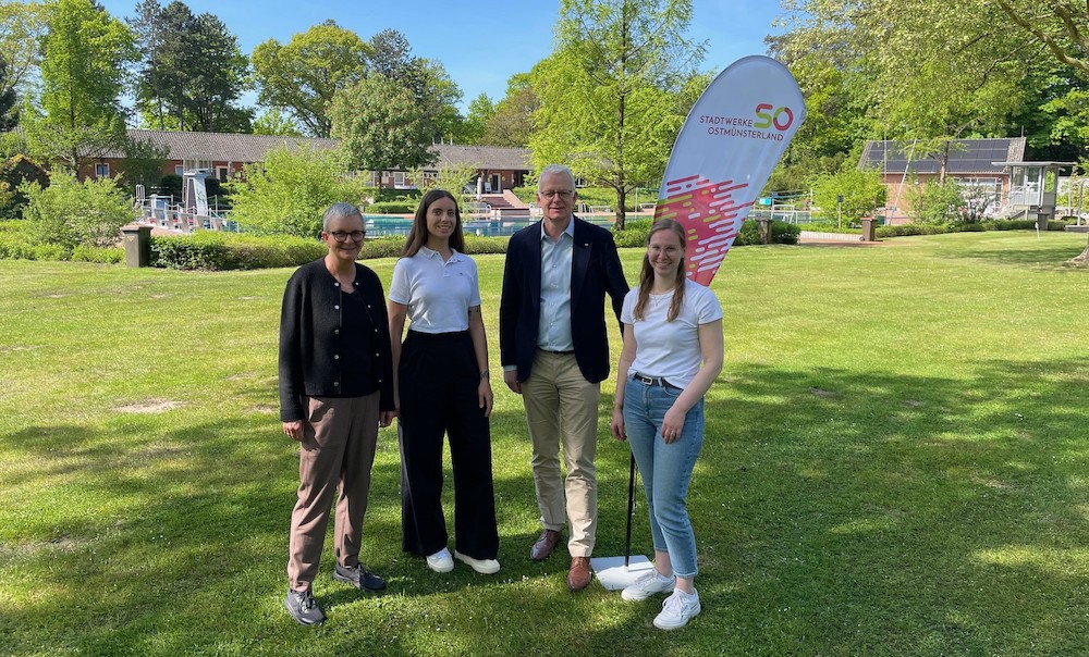 Von links: Ulrike Brandt (Kulturbüro Stadt Telgte), Annika Becker (Leiterin Tourismus + Kultur Telgte), Winfried Münsterkötter (Geschäftsführung Stadtwerke Ostmünsterland), Lena Enstrup (Öffentlichkeitsarbeit Stadtwerke Ostmünsterland).