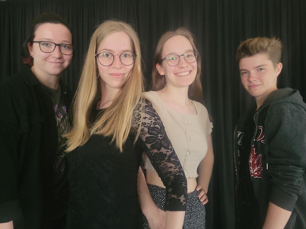 Die schriftlichen Abiturprüfungen sind abgeschlossen, und die mündlichen Prüfungen rücken näher. Doch dieser sommerlich warme Mai ist für einige Abiturientinnen des Mariengymnasiums Warendorf nicht nur von der Arbeit am Schreibtisch bestimmt. Die Corona-Bestimmungen des vergangenen Jahres haben die Literaturkurse des Mariengymnasiums dazu gezwungen, ihre Theateraufführungen ausfallen zu lassen. In einer kleinen Gruppe ist daher der Vorsatz gereift, das nachzuholen, was im letzten Jahr aufgegeben werden musste. Anfang Juni soll an vier Abenden im Theater am Wall unter der Leitung von Joachim Holling das Jugendtheaterstück „Creeps“ von Lutz Hübner aufgeführt werden. „Wir proben bereits seit Anfang der Q2. Natürlich setzen wir jetzt wieder neu mit den Proben ein, da wir vor den Klausuren absolut keine Zeit dazu hatten, nebenher noch Text zu lernen“, berichtet Emily Wiemann, eine der Darstellerinnen. „Dafür proben wir jetzt umso häufiger. Keine von uns steht aber das erste Mal auf der Bühne, wir haben schon durch ähnliche Projekte, zum Beispiel im Fach Kunst-Musik-Darstellen (KuMuDa), Erfahrung gesammelt.“ Das Jugendtheaterstück „Creeps“, auf der Idee eines Castings beruhend, zeigt, wie drei Jugendliche sich einfallsreich um die Stelle einer Moderatorin bewerben, die das Publikum durch „Creeps“, das neue Format eines Musiksenders, führen soll. Das neue Gesicht der Sendung soll selbstverständlich großartig und selbstbewusst sein, dazu gut aussehen; doch was der Sender wirklich will, stellt sich erst während des langen, nervenaufreibenden Castings heraus.