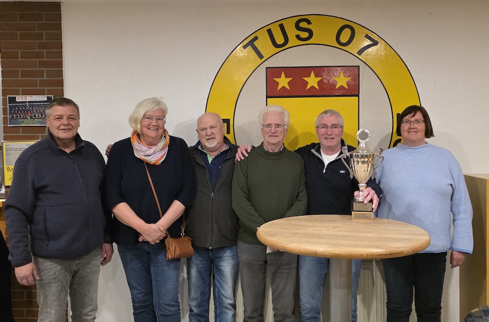 Ihm folgten Monika Kirchhoff (52), Manfred Hein (50), Albert Weißen (37) und Christine Lange (32). Trotz der Ausschüttung von fünf Geldpreisen, verblieb noch ein ansprechender Geldbetrag, der immer zugunsten der TUS-Jugend gespendet  wird.