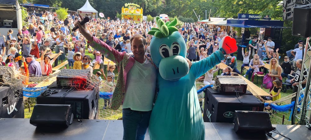 Er ist gebürtiger Warendorfer und sorgt immer wieder auch hier für strahlende Gesichter: Sänger, Songwriter und Entertainer Thorsten Kremer! Seit Jahren begeistert er mit seinen Schlagern seine stetig wachsende Fangemeinde und feiert gleichzeitig mit seinem treuen Begleiter MAX, dem kleinen Dino, deutschlandweit riesige Erfolge. „2025 wird ein ganz besonderes Jahr,“ so Thorsten MAX, der kleine Dino feiert seinen 15. Geburtstag. Sehr zur Freude von tausenden kleinen und großen Fans wird dieser Anlass mit einer großen Tour gebührend gefeiert. Was 2010 als Idee begann, ist längst eine Erfolgsgeschichte. Damals war der Künstler auf der Suche nach etwas Einzigartigem und die Idee zu MAX, dem kleinen Dino war geboren. Zunächst entstand ein Hörbuch und Thorsten ging auf eine Lesereise durch Grundschulen und Kitas. Von Anfang an begeisterte Max seine Zuhörer schon bald wurde aus dem Hörbuch die Figur MAX, die mit Thorsten auf der Bühne Kinder und Familien begeisterte. Heute sind die Auftritte der beiden fester Bestandteil im Veranstaltungskalender vieler Städte und längst ein Muss für Familien, die Musik und gute Laune lieben. Jahr für Jahr steht Thorsten Kremer mit MAX, dem kleinen Dino auf mehr als 100 Bühnen, unter anderem in einer großen Halle in Recklinghausen, wo rund 70.000 kleine und große Fans nur zu gerne mitsingen, feiern und applaudieren. Auch die beliebten Open-Air-Tourneen des Künstlers entlang der Nord- und Ostseeküste sind aus dem Sommerprogramm kaum mehr wegzudenken. 2025 geht das Erfolgsteam nun auf große Jubiläumstour. Auch mit Stationen in der Nähe seiner Geburtsstadt Warendorf. Am 30. August ist Thorsten mit MAX zu Gast auf dem Pflasterfest in Hameln und tags darauf gastiert er auf dem Stadtfest in Barsinghausen. Wieder wird es heißen: „Party-Alarm“ für die ganze Familie! Neue Lieder, bewährte Bewegungshits und jede Menge Spaß stehen auf dem Programm. Mitsingen, mittanzen, mitlachen; Entertainer und Sänger Kremer und MAX nehmen ihr Publikum mit auf eine fröhliche musikalische Weltreise. Und wer schon jetzt an die Adventszeit denkt: Auch für die Weihnachtstour 2025 gibt es bereits feste Termine. Thorsten und MAX werden wieder auf dem Christkindlmarkt in Wiedenbrück auftreten und an zwei besonderen Tagen, am 30. November und am 13. Dezember, jeweils um 16 Uhr das Friedenslicht innerhalb ihrer Familienkonzerte an die Besucher übergeben. Ein stimmungsvoller Höhepunkt für Groß und Klein in der Vorweihnachtszeit. Thorsten Kremer und sein kleiner Dino MAX zeigen eindrucksvoll, wie Musik Generationen verbindet. 15 Jahre voller Lachen, Bewegung und Herzblut – und zum Glück kein Ende in Sicht!