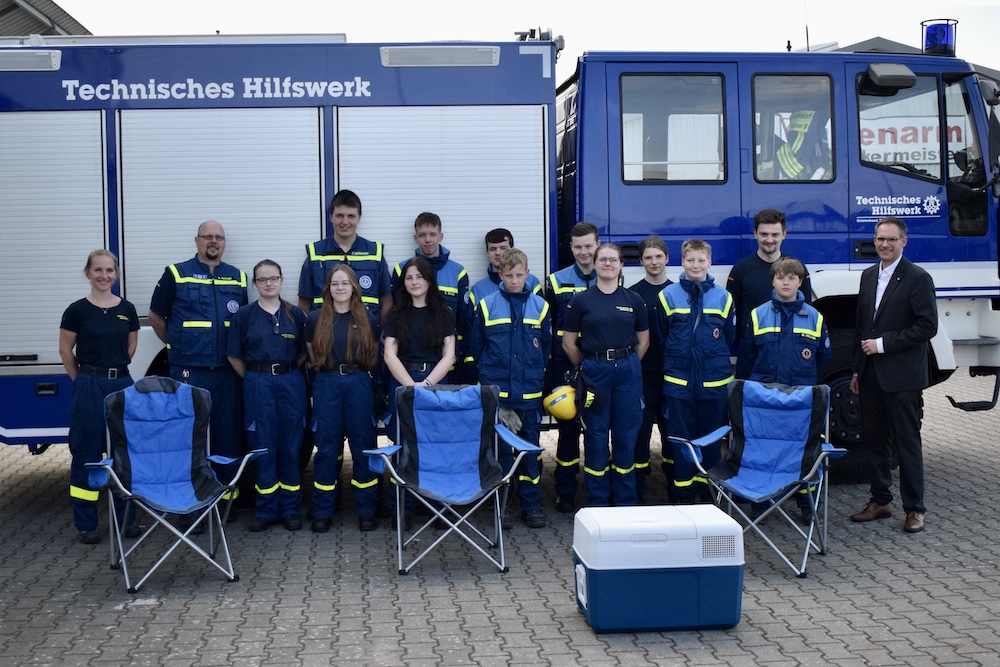Ein Campingplatz in Haltern am See war das Ziel von sechs Ortsverbänden aus dem Bereich der THW-Regionalstelle Münster. Es ging zum diesjährigen Bezirksjugendlager, organisiert durch die Bezirksjugendleitung Münster, welches dort stattfand. Mit dabei war auch die THW-Jugend Warendorf mit 13 Kindern und Jugendlichen sowie den drei Betreuern Werner Halank, Gabriel Krause und Petra Halank-Wilbränder. Petra Halank-Wilbränder war zugleich auch noch als Köchin für die Verpflegung der mehr als 100 Teilnehmer zuständig. Los ging es am Mittwochabend vor Fronleichnam. Nach der Ankunft und der Zuteilung der Plätze galt es nach der Ankunft die mitgebrachten Mannschaftszelte aufzubauen. Eine Aufgabe, welche für die Jugendlichen im Alter von 10-16 Jahren keine große Herausforderung darstellte. Hatten sie dieses in der Vergangenheit doch bereits mehrfach geübt. Das viertägige Bezirksjugendlager bot den Jugendgruppen ein vielseitiges Programm. Neben einem Besuch im Kletterpark und einer Stadtrallye gehörte unter anderem auch die Besichtigung des LWL Römermuseums Haltern dazu. Vor allem aber der mögliche Austausch mit anderen Jugendgruppen wurde von den Teilnehmern sehr geschätzt. Zum Einsatz kamen dieses Mal auch die extra für Lagerfahrten beschafften Campingstühle sowie die neue Kühlbox für Getränke. Gerade die Temperaturen der letzten Tage unterstrichen die Notwendigkeit einer derartigen Anschaffung. Zur Freude der Eltern wurde auch ein Großteil der Kosten der Fahrt durch den Förderverein der Jugendgruppe, dem THW-Jugend Warendorf e. V., übernommen. Ermöglicht wurde dieses durch eine Spende der VIA-Stiftung der Volksbank Warendorf. Hierdurch konnten neben den Campingstühlen und der Kühlbox auch der Kostenbeitrag der Jugendgruppenmitglieder deutlich gesenkt werden. So wurden die Teilnehmer am Mittwochabend dann auch nicht nur durch die Ortsjugendleiterin Anna-Lena Raab verabschiedet. Ebenfalls vor Ort war auch Daniel Hülsmann von der Volksbank Warendorf. Er nutzte die Abreise nicht nur zur Spendenübergabe, sondern auch um mit den Jugendgruppenmitgliedern und ihren Betreuern ins Gespräch zu kommen. Dabei stellte sich heraus, dass auch für zukünftige Lagerfahrten noch Zuschüsse für die Fahrtkosten sowie für weitere, zwingend notwendige Anschaffungen durch den THW-Jugend Warendorf e. V. erforderlich sind. „Die Jugendarbeit liegt nicht nur der VIA-Stiftung, sondern auch mir persönlich sehr am Herzen. So dass ich schon jetzt eine Unterstützung für die Lagerfahrt im kommenden Jahr zusagen kann.“, so Hülsmann. Die Jugendgruppenmitglieder nahmen dieses hocherfreut zur Kenntnis, ist doch aus finanzieller Sicht die Teilnahme am Bundesjugendlager in Föhren (Rheinland-Pfalz) im kommenden Jahr somit gesichert.