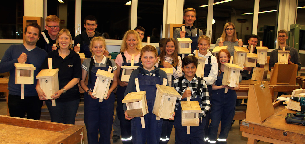 Im Zuge der Ausbildung in der Jugendfeuerwehr wird auch ein soziales Projekt durchgeführt. In diesem Fall hatten Carola Wesseler, Kreisjugendwartin der Feuerwehr, und KH-Geschäftsführer Günter Schrade das Angebot entwickelt, in der Tischler-Lehrwerkstatt Nistkästen für den Vogelschutz in Drensteinfurt zu bauen. An zwei Abenden kamen 15 Jugendfeuerwehrleute, um unter Anleitung von Tischlermeister Georg Westbeld das geplante Projekt praktisch umzusetzen. Das dafür notwendige Holz hatte die Firma Seiling aus Ahlen zur Verfügung gestellt.