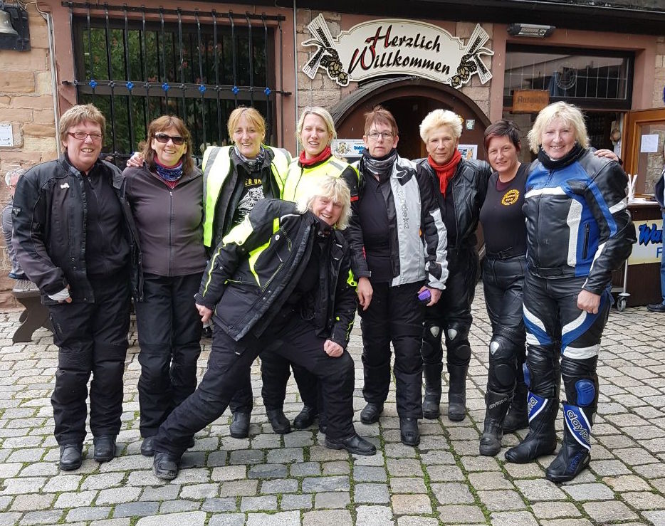 Am Wochenende vom 19. – 21. Mai 2017 war es wieder soweit. Die Frauen der Motorradfreunde Sassenberg trafen sich um 8:30 Uhr zu ihrer jährlichen Frauentour an der Tankstelle Lietmann. Pünktlich um 9:00 Uhr starteten die insgesamt 10 Bikerinnen (Maria Hecker, Nadine Lakenbrink, Marion Dam, Anja Leuters, Sigrid Kornitzki, Carmen Passgang, Brigitte Bolsmann, Ulrike Möllers, Karin von Dinklage und Silke Wiewel) ihre anspruchsvolle und sehr aufregende Tour zum Hotel Waldeck in Flörsbachtal im Spessart.