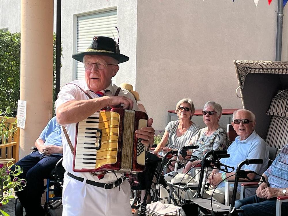 Am Sonntag besuchte die Schützengarde 83 des Bürgerschützenvereins Warendorf zum 36. Mal in ihrem 40jährigen Bestehen das Malteser Marienheim, um den Bewohnern das Schützenfest wieder ein Stück näher zu bringen. Dieses geschah traditionsgemäß während des Bürgerschützenfestes. Begleitet wurde die Schützengarde vom Königspaar Rainer und Regina Schulz und ihrer Throngesellschaft sowie den Fahnenschlägern und dem Spielmannszug Freckenhorst. Natürlich durfte auch das Warendorfer Urgestein Franz Schulze Nahrup mit seinem Akkordeon nicht fehlen. Wie seit langem, wurden auch dieses Jahr wieder rote Rosen und Lose an die Bewohner verteilt. Nach einem abwechslungsreichen Programm mit Fahnenschlag, Gesang und Schunkeln gab es Applaus und zur Stärkung Kaltgetränke und einen Malteser. Diese Tradition ist ein wichtiger Programmpunkt der Schützengarde.