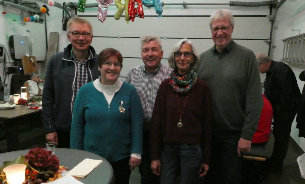Ehemalige Majestäten der Kolpingsfamilie Warendorf trafen sich zu einer geselligen Runde und ermittelten mit Anne Fährenkämer (2. v. l.) die Königin der Könige. Mit den Insignien ausgezeichnet wurden Martin Hülsmann (Krone, 5. v.l), Zepter Agnes Hokamp (4. v. l), Apfel Jürgen Arendt (1. v li.). Den Titel Prinzgemahl errang Bernhard Blanke (3. v. li.)