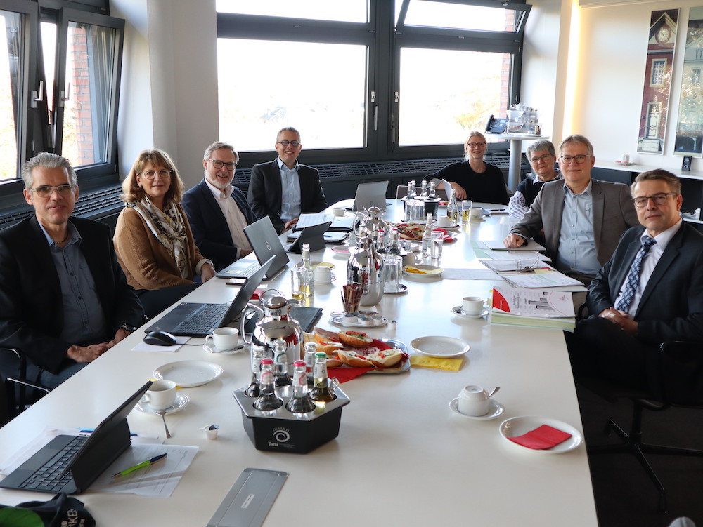 Kreisdirektor Dr. Stefan Funke (r.) und Kämmereileiterin Ulrike Kleier (2. v. r.) tauschten sich mit den Kämmerern der anderen Münsterlandkreise über die aktuelle Finanzsituation aus.