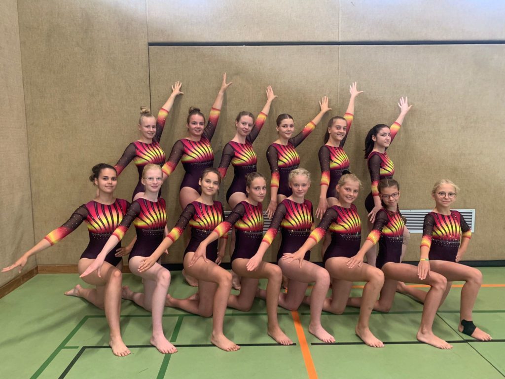 Es turnten für den TuS in der Mannschaft der MLL 1, hintere Reihe v. li.: Johanna Beerenbrink, Franziska Holthaus, Vanessa Dühlmann, Leni Rielmann, Greta Alsmann und Halima Demircan (es fehlen Sophia Luhmeyer und Anna Fast). Die Mannschaft der MLL 2 v.li.: Jessica Friesen, Mia Schulden, Janna Sievers, Pia Scharf, Ida Kalthöner, Paula Gralki, Pia Dühlmann und Frieda Winkler. (Foto: TuS Freckenhorst)
