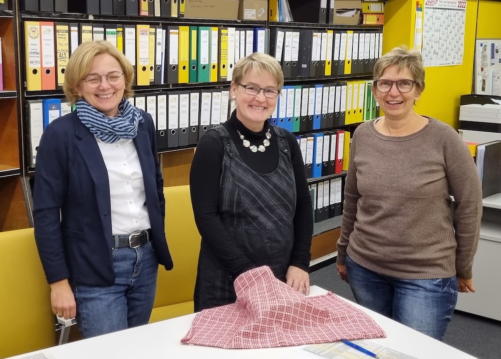 (v.l.n.r.) Birgit Achtermann, Schützenkönigin Sandra Uhkötter und Evelyn Schütter bei der Ziehung der Gewinnerlose