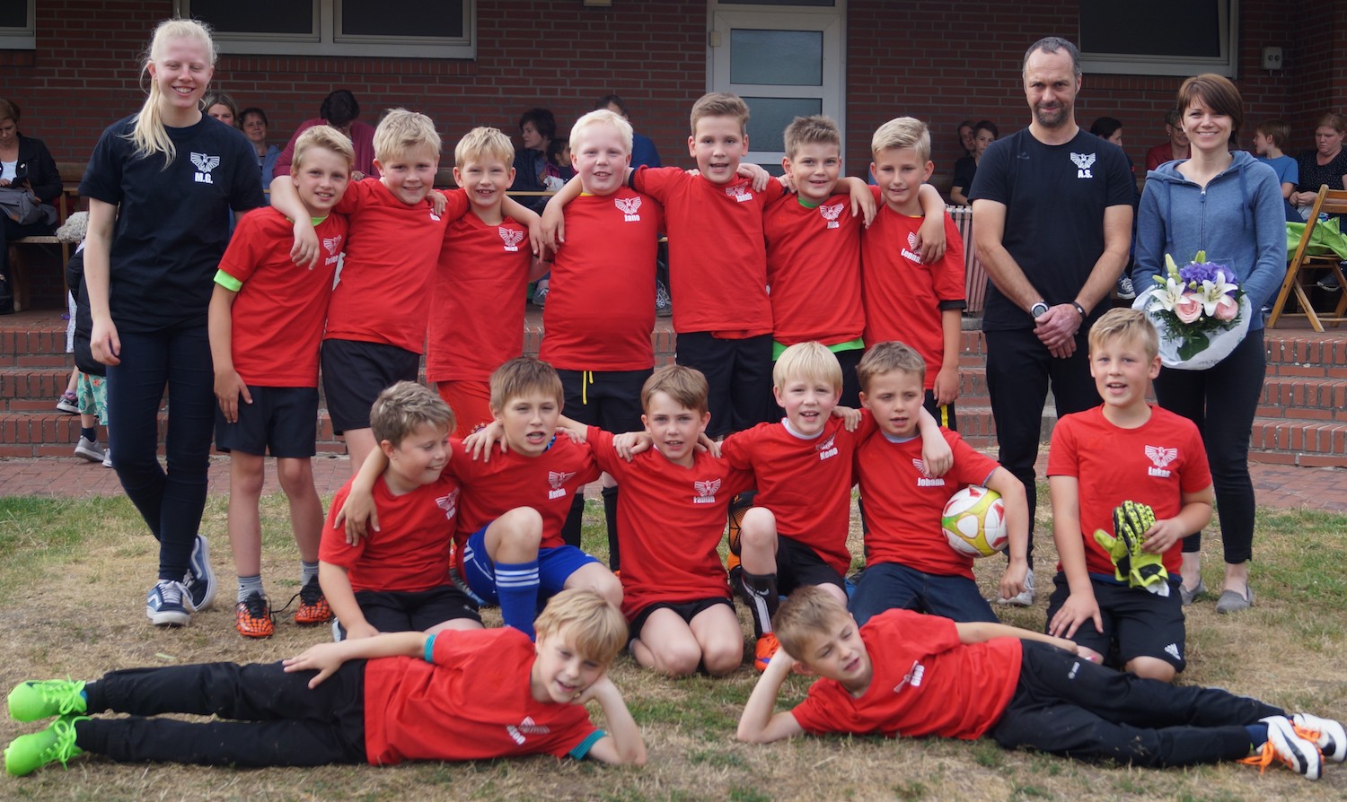 Milte. Die U9 Mannschaft der DJK RW Milte feierte vor den Sommerferien einen gelungenen Saisonabschluss. Bei Grillwürstchen und kühlen Getränken wurden die Trainer André Schoppmann und Sophia Niersmann verabschiedet. Zur neuen Saison wird die Mannschaft von André Sternberger und Michelle Grube betreut. Zum Einstand und zur Überraschung der Mannschaft bekam jeder Spieler ein neues T-Shirt in den Vereinsfarben überreicht. Diese wurden von Elena Gabriel, Inhaberin der gleichnamigen Schneiderei für Braut- und Abendmode, gesponsort. Das Trainerteam, die gesamte Mannschaft und der Vorstand der DJK RW Milte bedankt sich ganz herzlich bei Elena Gabriel für diese Unterstützung. Die neuen T-Shirts gelten sicher als Motivation, um nach den Sommerferien als U10 Masnchafte mit viel Elan in die neue Saison zu starten.