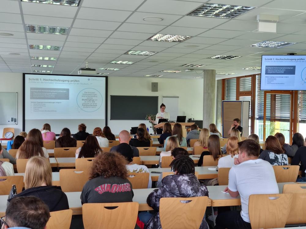 „Welcher Studiengang passt zu mir? Welche Zulassungsvoraussetzungen gibt es? Welche Bewerbungsfristen gilt es einzuhalten?“ – Antworten aus erster Hand auf diese und weiterführende Fragen haben die Schülerinnen und Schüler der drei Unterstufenklassen der Fachoberschule mit der Fachrichtung Gesundheit und Soziales am Paul-Spiegel-Berufskolleg kurz vor den Sommerferien erhalten.
