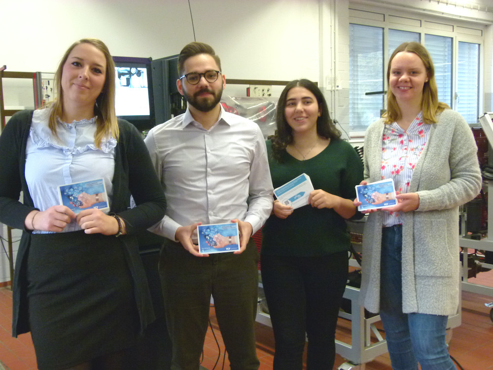 Die Auszubildenden der Kreishandwerkerschaft Steinfurt-Warendorf haben bei Auszubildenden im Handwerk eine Umfrage zur Digitalisierung durchgeführt. Die Auszubildenden in der Geschäftsstelle Beckum (v.l.n.r.): Meike Herrmann, Denis Andreev, Miriam Bulut, Franziska Schweck