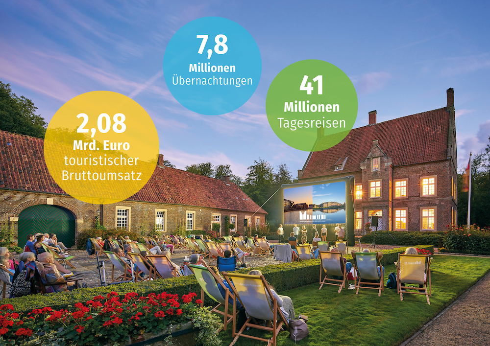 2,08 Milliarden Euro beträgt der touristische Bruttoumsatz im Münsterland für das Jahr 2024. Das hat eine aktuelle Studie der dwif-Consulting GmbH ergeben, die der Münsterland e.V. nun erneut nach 2019 und 2020 in Auftrag gegeben hat.